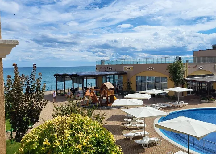 El Studio F210 - Bulharsko Aheloy está situado a 7 km del Estadio de Nesebar y ofrece una piscina exterior. El apartamento, con vistas al mar, garantiza la seguridad de sus huéspedes ofreciendo seguridad las 24 horas.